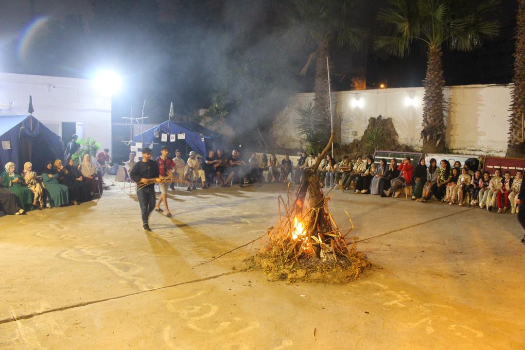 تطبيقاً للتقاليد الكشفية أفتتح المخيم بمراسيم رفع العلم و طابور الصباح بكل نشاط و حيوية أين أظهر الكشافون إستعدادهم للمخيم ، كان أول ما تلقته الوحدين و طبقته هو درس ” إختيار مكان التخييم و نصب الخيم ” و تقييم الطلائع في الفترة الصباحية ليتوجوا بعدها للتعاون في تحضير الفطور فالعمل الكشفي هو عمل جماعي . خصصت الفترة المسائية لتطبيق المواقد و النيران الكشفية ، و بهذا تم تجهيز المخيم لاستقبال كل أعضاء الفوج الذين اجتمعوا حول نار السمر بعد العشاء ليستمتعوا بما قدمه الكشاف من أناشيد كشفية و عروض فنية معبرة عن القضية الفلسطينية عاكسين اهتمامهم بالقضية الأم فالكشافة تربي الفرد على القيم الدينية و الوطنية الصحيحة فمن قوانينها ” الكشاف مخلص لوطنه ” .